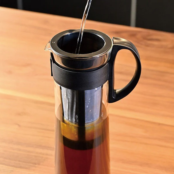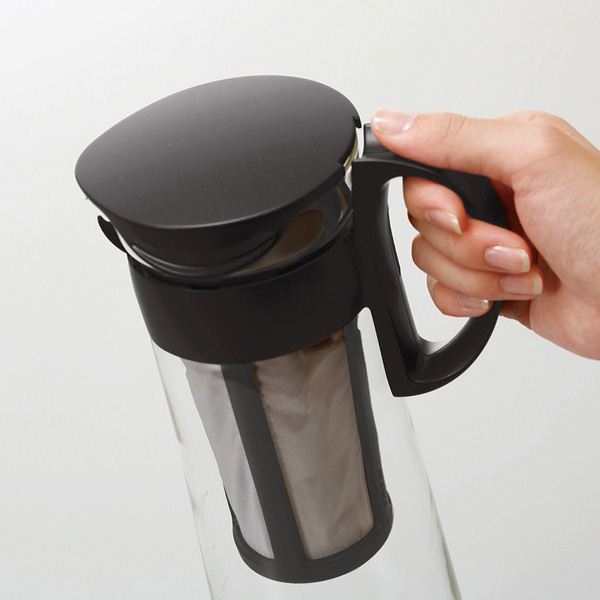 ストレーナー(濾し器)付きの、水出しコーヒーポット。