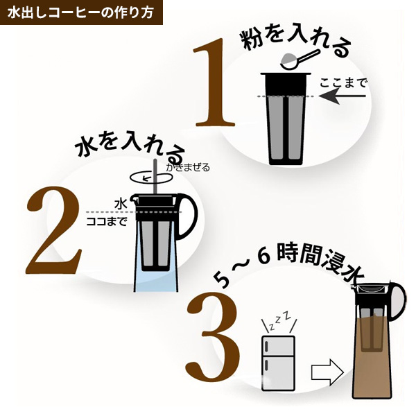 お作りになった水出しコーヒーは必ず冷蔵庫で保存し、2〜3日以内にお召し上がりください。日がたつと酸化が進みます。