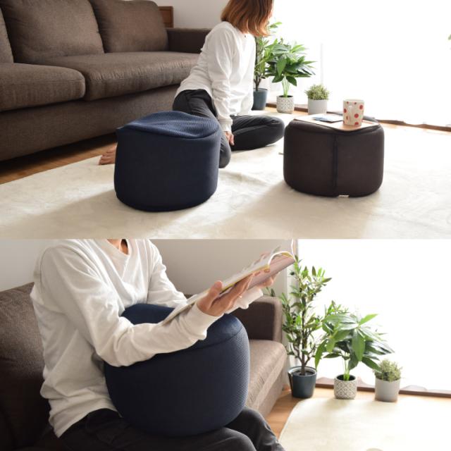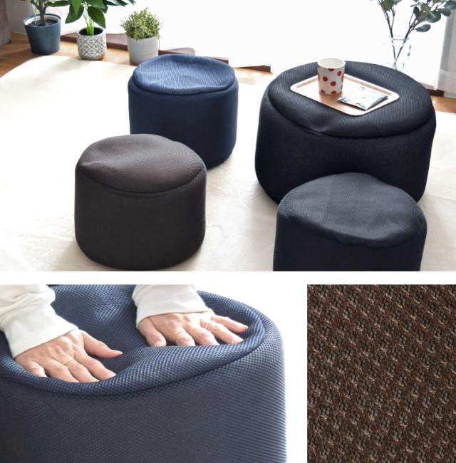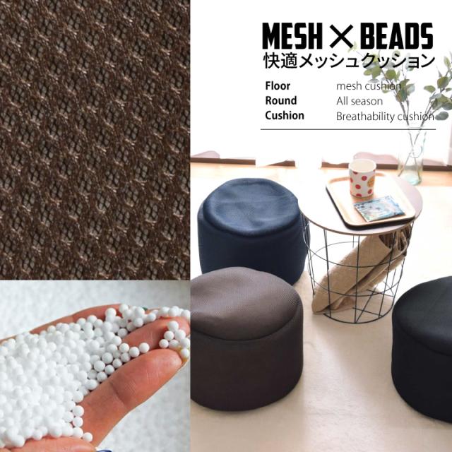 クッション メッシュビーズクッション 本体 背もたれ 詰替え 補充可 メッシュ ミニ 小さめ フロアクッション 一人用 おしゃれ 座面の高さ25cm 直径35cm 円筒 円柱 円型