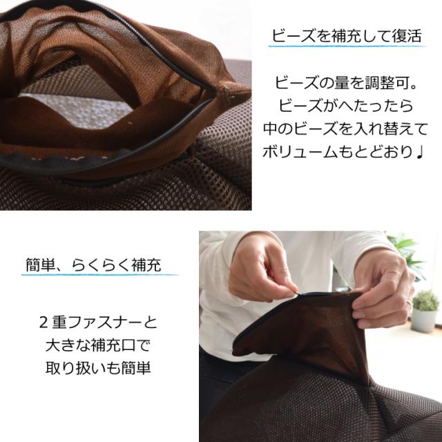 中身のビーズは出し入れ可能なので、お好みの厚さに調整できます