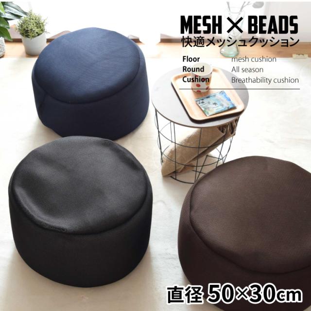 クッション メッシュビーズクッション 本体 背もたれ 詰替え 補充可 メッシュ スツール 大きめ ソファー ビーズソファー 一人用 おしゃれ 座面の高さ30cm 直径50cm 円筒 円柱 円型