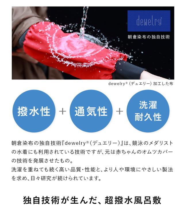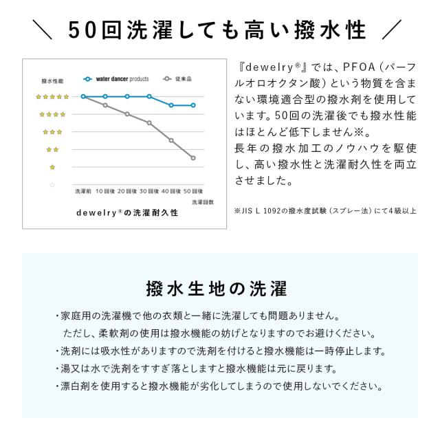 ポリエステル100%に超撥水加工『dewelry(R)(デュエリー)』の生地を使用しています。