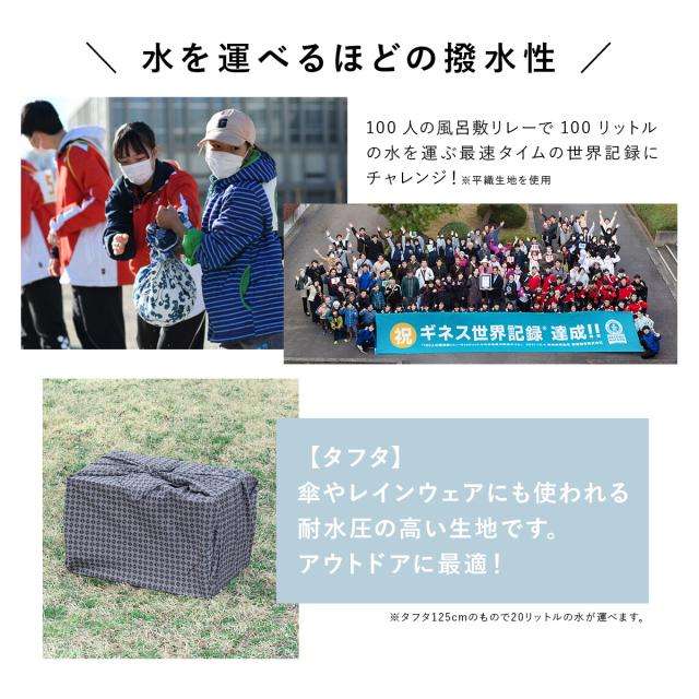 - 大き目の風呂敷を検索していたところこの商品に行きつきました。 125cm四方は私にとって十分以上な大きさですが、たためばカバンの隙間に邪魔にならずに収まり、布の強度も十分で、さらには撥水機能を持っているということで、今後かなり役立ってくれると思います。 郵便受けで商品を受け取れるのは大変気楽だと思います。その上配達状況を見ることができるので楽しみに待っていられます。