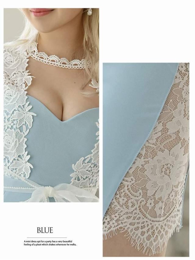 ☆パステルカラー×レースが施されてチョーカー風なのでアクセ要らずの上品ながらにも可愛さを詰め込んだミニドレス♪