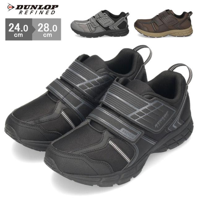 DUNLOP ダンロップ 靴 スニーカー メンズ リファインド DM2012 黒 茶色 ブラック ブラウン グレー 幅広 4E 軽量 撥水 ベルクロ