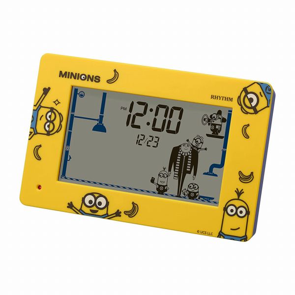 時刻ごとに異なった全13種類のアニメーションが流れ、ミニオンたちと暮らしているような気分になれるデジタル時計です。