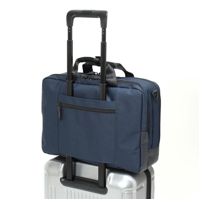 キャリーオン機能付きなので、出張などでのキャリーケースとの併用も可能です。バッグの背面にキャリーケースのバーを通し、簡単にセットアップできます。両手がふさがらないので便利です。