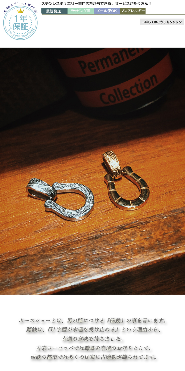 当店のステンレスは、医療用品にも使われているサージカルステンレス316Lです。変色もせず・傷・汚れにも強く、アレルギーを起こしづらい安心な素材です。 半永久的な輝きを演出します!