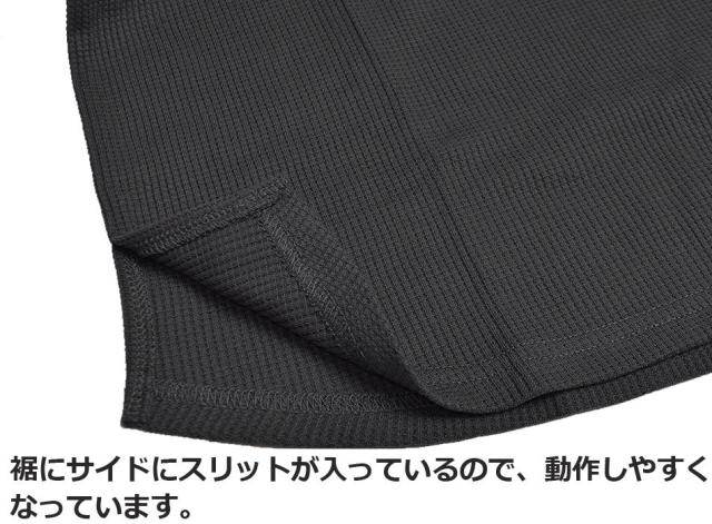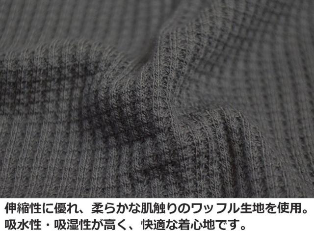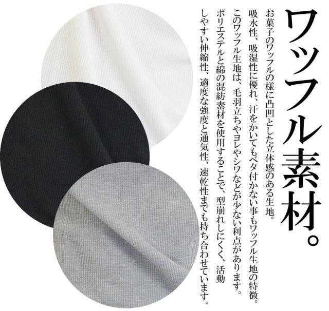 ■ワッフル生地の大きな特徴が、吸収性に優れ、汗をかいてもベタ付かず、また逆に空気を含む事で保湿性を高める効果もあります。