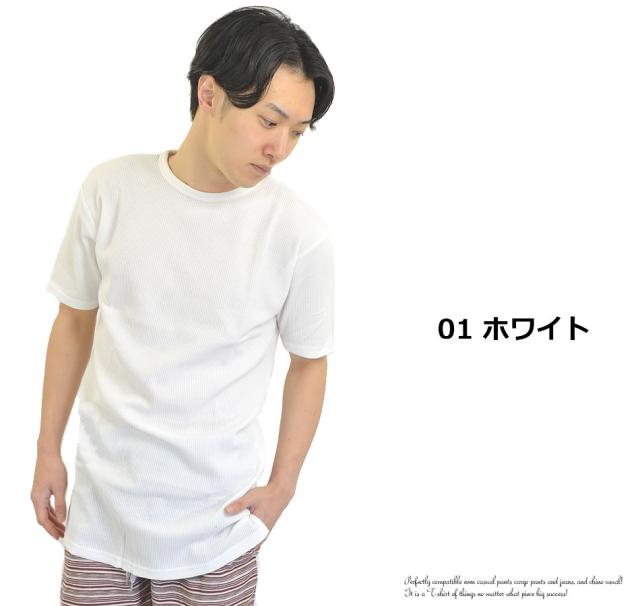 夏新作 半袖 Tシャツ メンズ ロング丈 カットソー 半袖Tシャツ 無地 インナーシャツ 綿混 トールサイズ ワッフル 生地 ロングTシャツ 丈長め 長い丈 トールTシャツ インナー 重ね着 レイヤード おしゃれ 着こなし クルーネック 丸首 白 黒 グレー 春 夏 秋 スポーツ シンプル