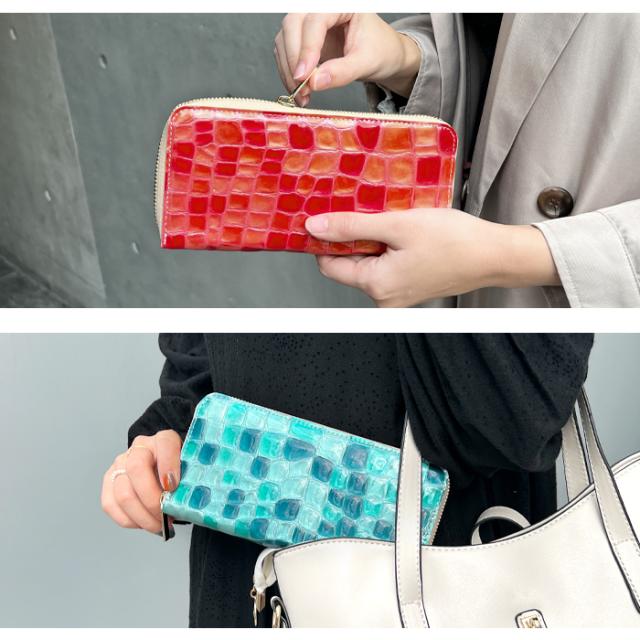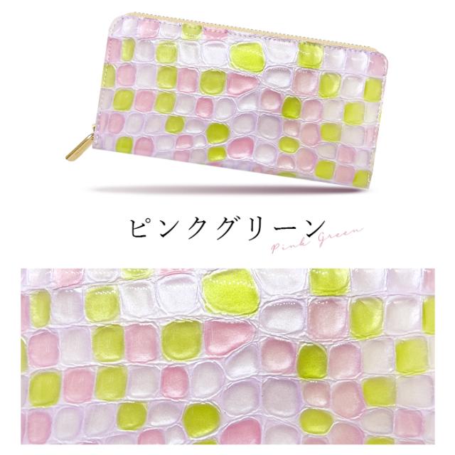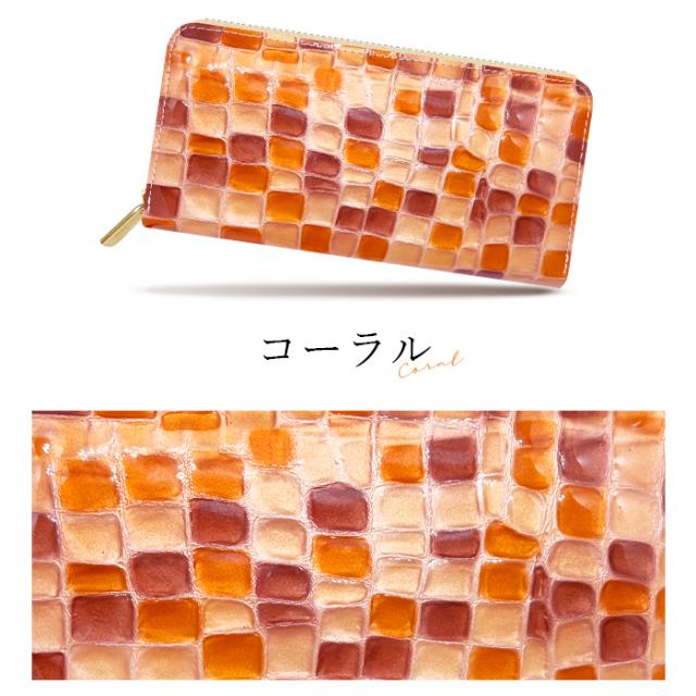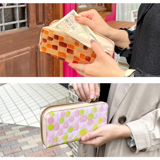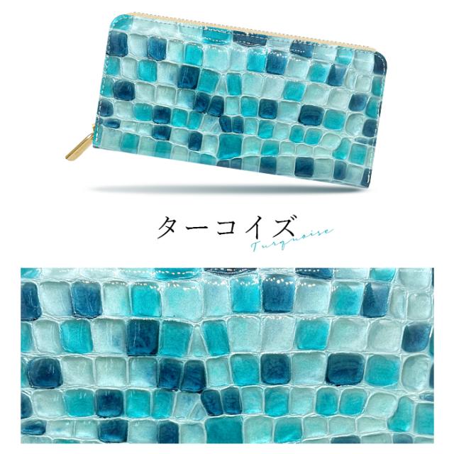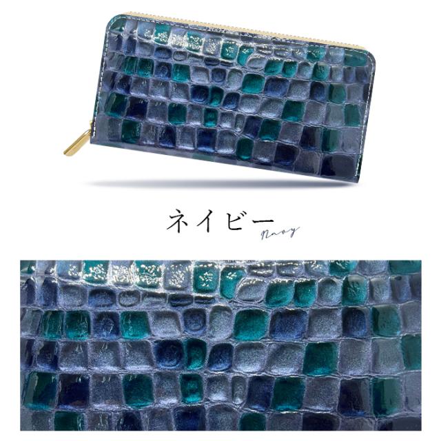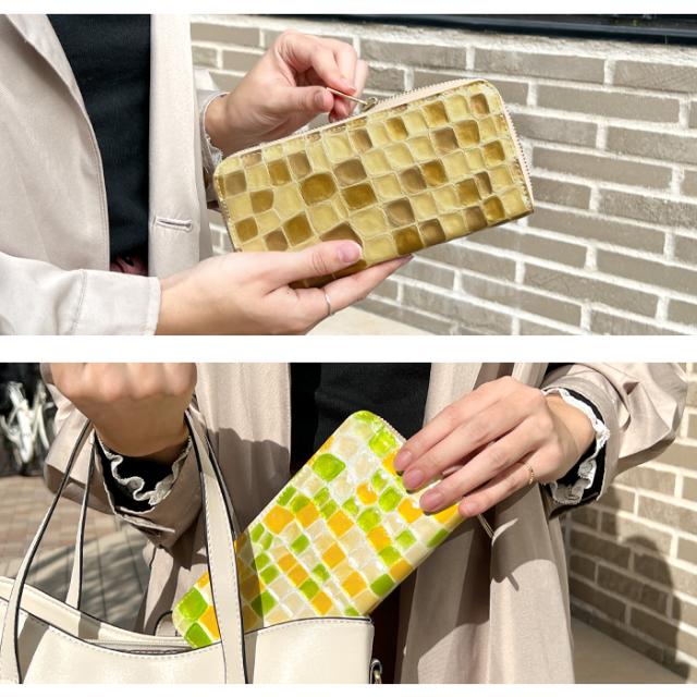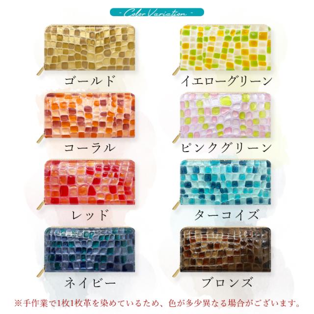 財布 長財布 レディース 本革 上品なステンドグラス 大容量 ラウンドファスナー サイフ 小銭入れ ウォレット 革 レザー カード収納 エナメル加工 ハンドメイド