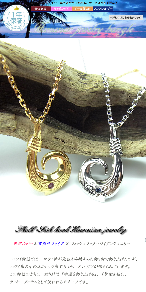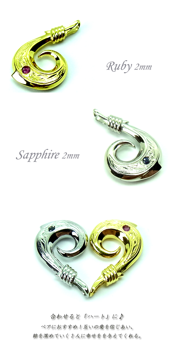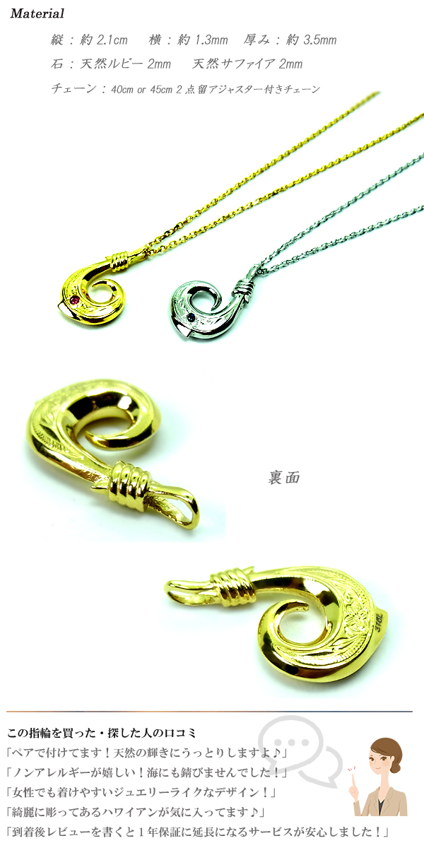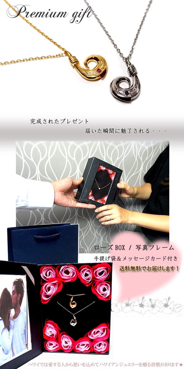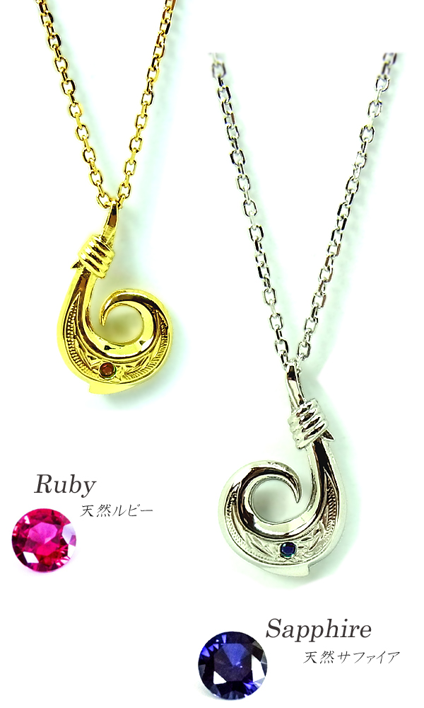 ペアネックレス ペアハワイアンジュエリー フィッシュフック サファイア ルビー 金属アレルギー対応 サージカル ステンレス 花 入浴剤 写真フレーム フラワー