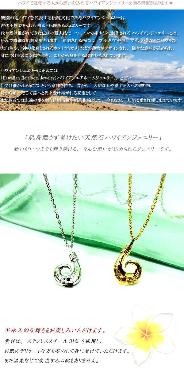 ハワイでは愛する人から想いを込めてハワイアンジュエリーを贈る習慣があります★遠い昔からハワイアンジュエリーは人々の大切な想いとともに身に着けられてきました。