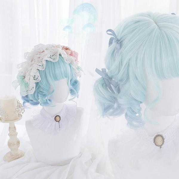 ウィッグ グラデーション lolita レディース フルウィッグ 小顔効果抜群 短髪 ゆめ可愛い 原宿風 かつら 巻き毛 ぱっつん前髪 コスプレ ロリータ 可愛い キュート パーティー ハロウィン COSPLAY コスチューム 仮装 変装 女装 イベント 文化祭 学園祭 演劇 舞台