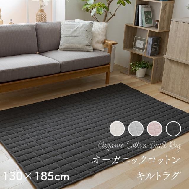 ★レビュー投稿でポイント還元★ オーガニックコットンラグ 130×185 カーペット マット ラグ オーガニックコットン 130cm×185cm 綿100% 絨毯 じゅうたん すべり止め すべり止め付き 抗菌 防臭 防ダニ オールシーズン 床暖房