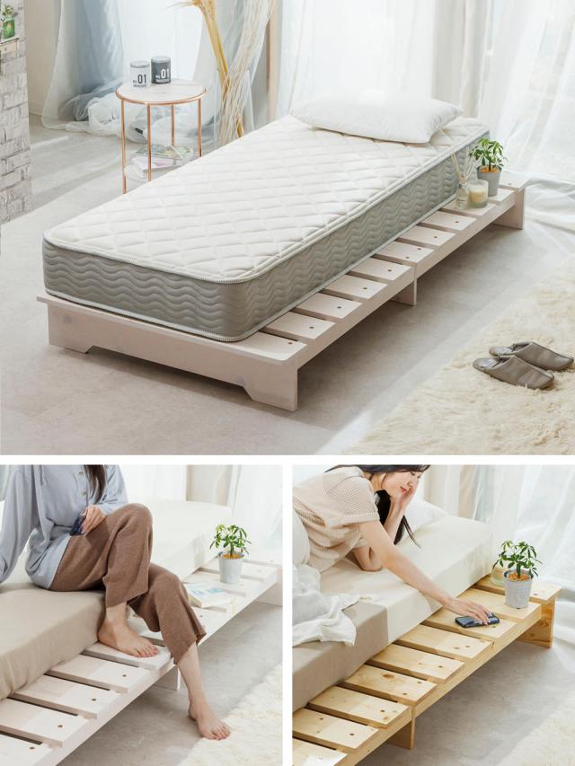 小さいサイズのマットレスと組み合わせて使うことで、余ったすのこ部分をサイドテーブルとして有効活用したり、ベッドから降りる時の踏み台にしたり、ライフスタイルに合わせてアレンジしていただけます。