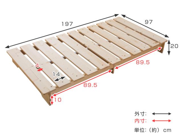 ベッド シングル ステージタイプ 天然木 並べて使える 耐荷重200kg ( スノコ すのこ マット ベッドフレーム ヘッドレス 簡単組立 頑丈 極厚 湿気 カビ 対策 パイン材 無垢材 布団 マットレス対応 )