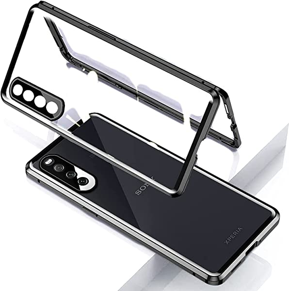 Xperia 10 III ケース 両面強化ガラス クリア SO-52B Xperia10III Lite スマホケース ガラスケース アルミ バンパー 表裏 前後 透明両面ガラス 360°全面保護 ケース磁気吸着 SOG04 カバー ガラス 全面ガラス マグネット式 アルミバンパー 取り付けやすい (Xperia 10 III ブラック)