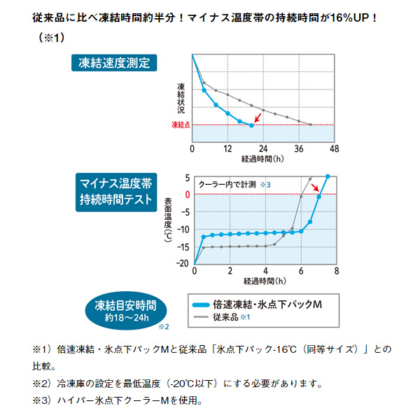 従来の氷点下パック-16℃の約半分の時間で凍結完了!