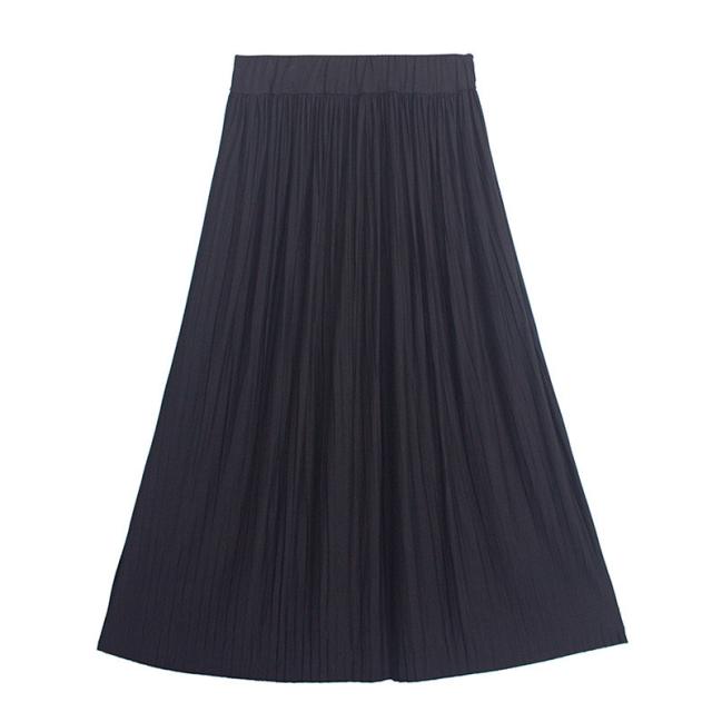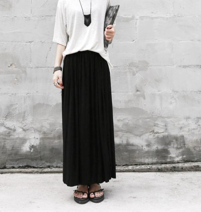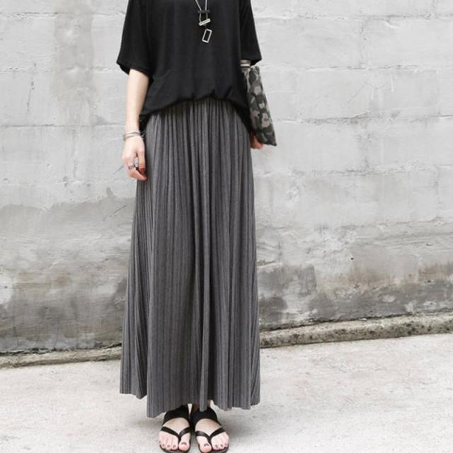 マキシ丈 プリーツ スカート グレー ハイウエスト 美脚 体型カバー ロングスカート 韓国ファッション レディース ゆったり 柔ら 母の日