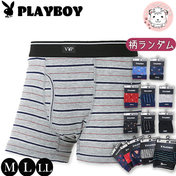 プレイボーイ ボクサーブリーフ プリント柄 前開き アウトゴム 綿混 M/L/LL | ボクサーパンツ メンズ 前あき パンツ ボクサー 男性 下着 肌着 インナーボトム PLAYBOY
