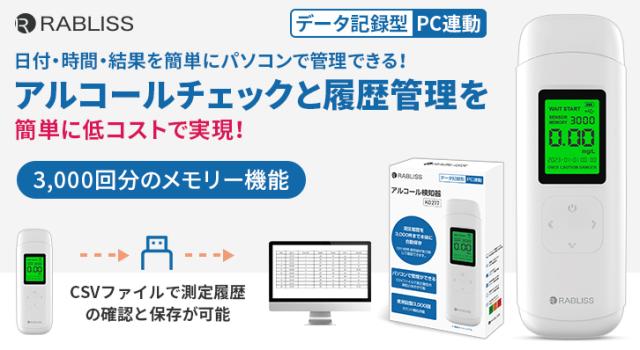 日付・時間・結果を簡単にパソコンで管理できるアルコール検知器