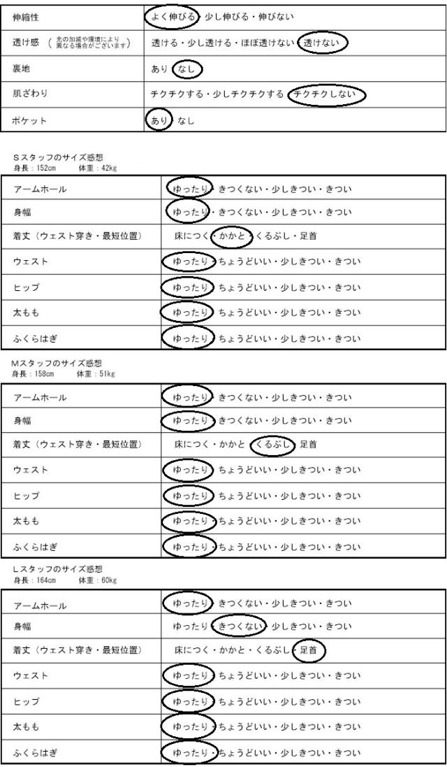| 裾周り(スリットあり) | 26 |