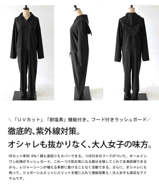 【検索ワード】ラッシュガード レディース オールインワン フード付き 水陸両用 UVカット 日焼け防止 耐塩素 無地 長袖 長ズボン 裾リブ ジョガーパンツ ゆったり ハイネック フード つば付き フーディー フロントジップ ファスナー ジップアップ ポケット付き 紫外線対策 つなぎ サロペット サロペ 伸縮 ストレッチ 体型カバー ウエストマーク ドロスト スリット アウトドア キャンプ フェス レジャー 山 海 川 プール 海水浴 水着 ママ水着 スイムウェア マリンウェア スポーツウェア フィットネス 旅行 通勤 通学 ランニング ヨガ 水遊び 川遊び ジョギング ジム トレーニング スポーツ 運動 トレーニングウェア 自転車 マラソン antiqua アンティカ 大人 おしゃれ 10代 20代 30代 40代 50代 60代 春 夏 お洒落 カジュアル かわいい かっこいい あんてぃか