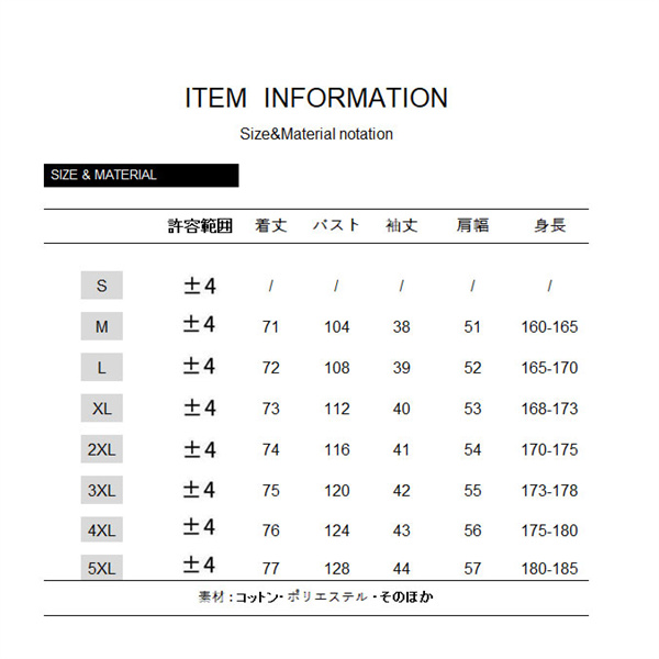 サイズ:/M/L/XL/2XL/3XL/4XL/5XL