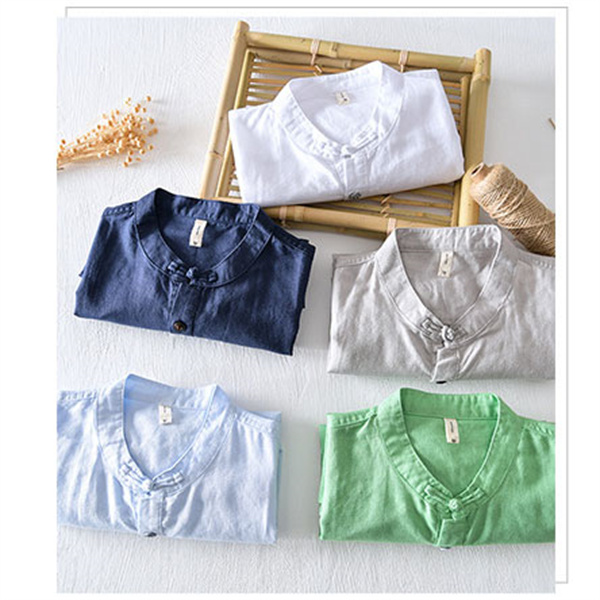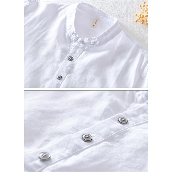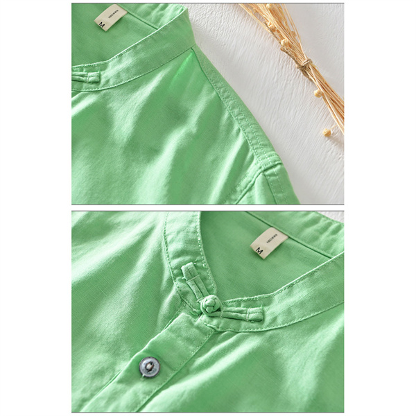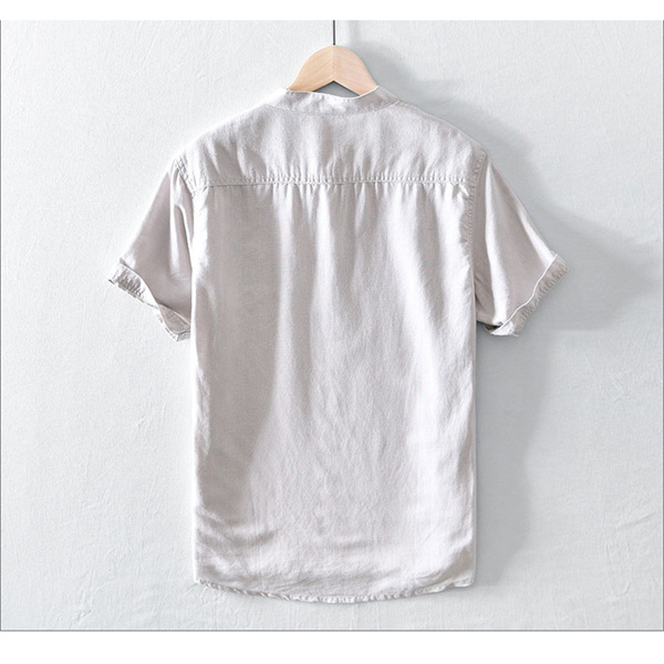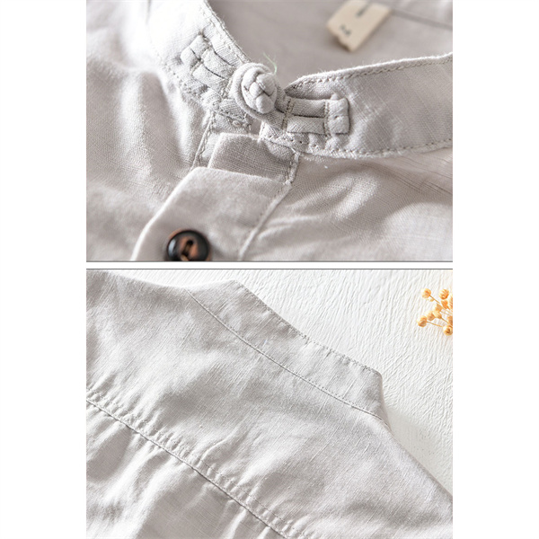 ポイント超超祭 綿麻シャツ メンズ カジュアルシャツ メンズシャツ 半袖シャツ スタンドカラー 無地 ゆったり カッコイイ 大きいサイズ 夏 男性 涼しい 彼氏