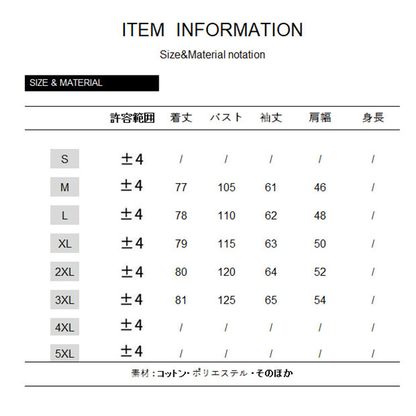 サイズ:/M/L/XL/2XL/3XL
