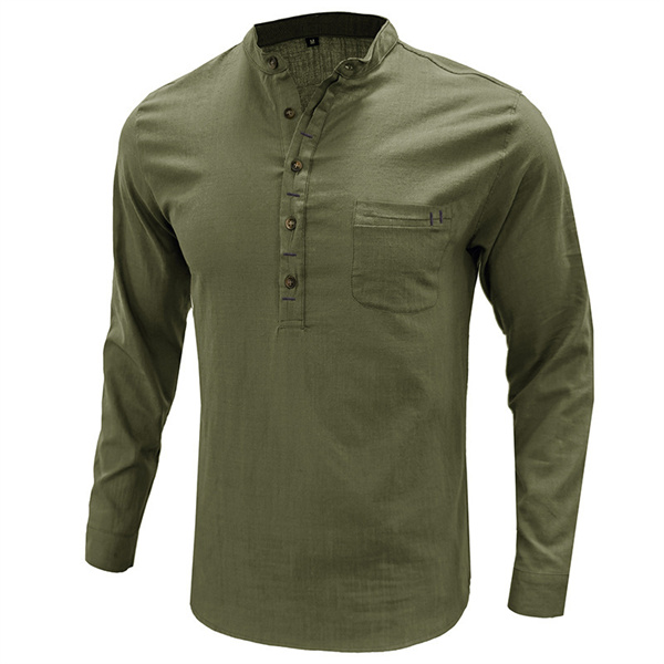 ポイント超超祭 綿麻シャツ メンズ 麻混シャツ カジュアルシャツ 胸ポケット付き スタンドカラー 夏シャツ 通勤 リネンシャツ 春物 夏服 カッコイイ スリム