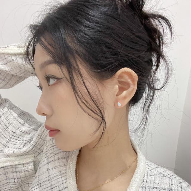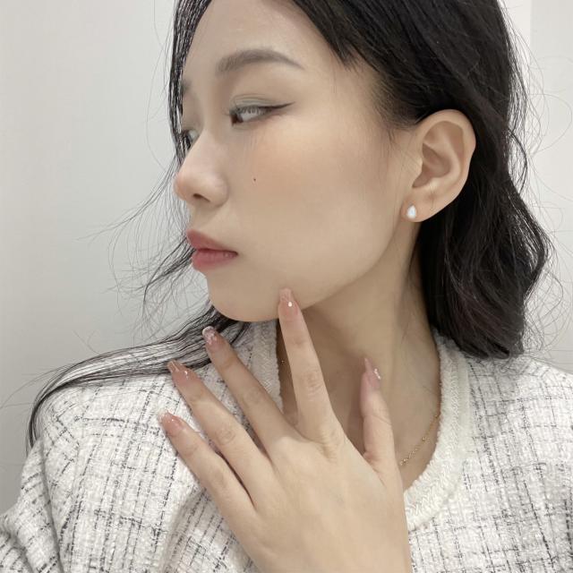 ジャストサイズの雫型が女性らしく、ペアシェイプをセッティングしてモードをプラス
