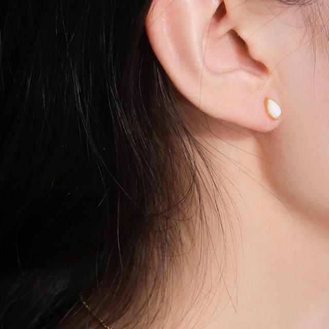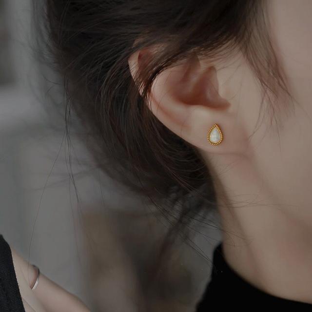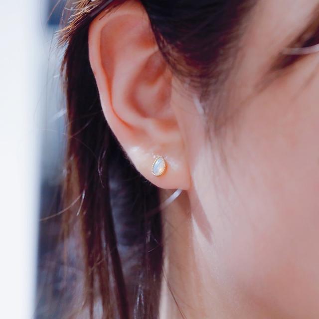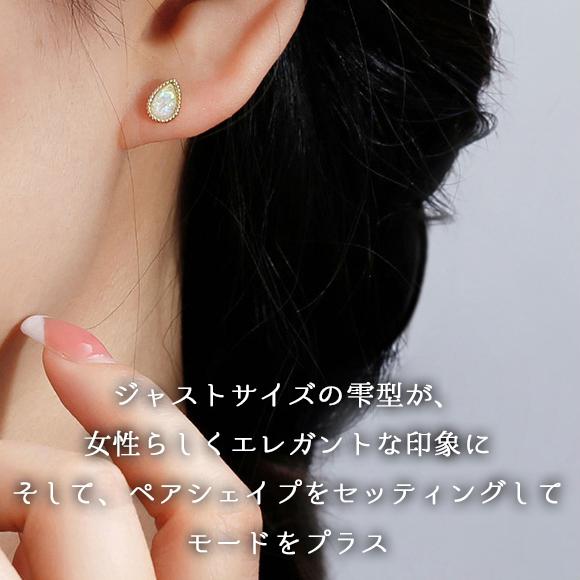 ピアス レディース オパール 18K 金属アレルギー対応 小さめ シルバー925 雫 ドロップ エレガント ミル打ちデザイン オフィス 仕事 プレゼント