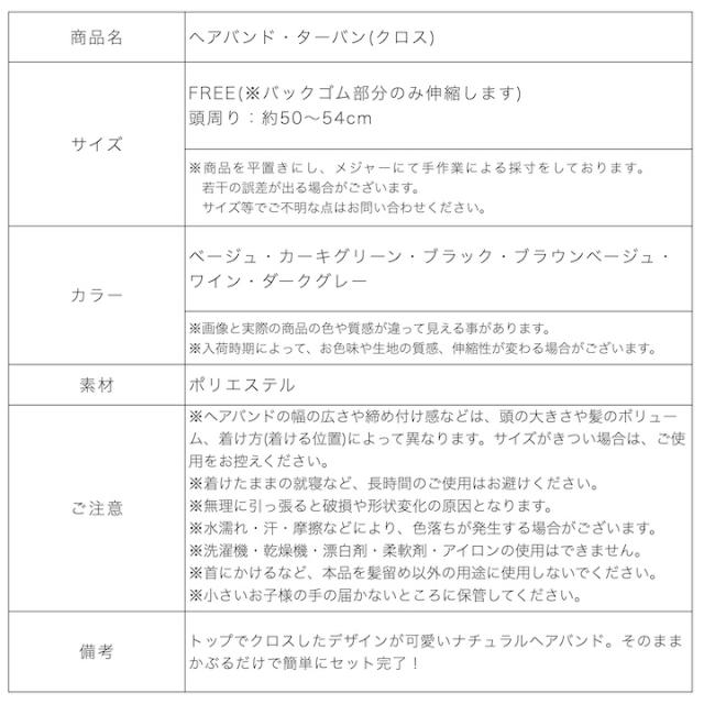 【商品名】ヘアバンド(クロス・無地)