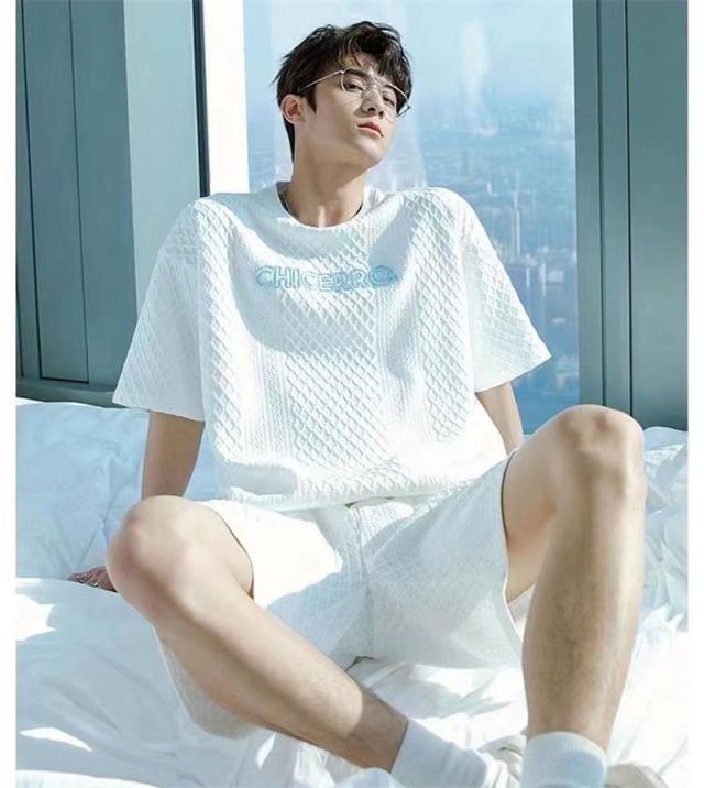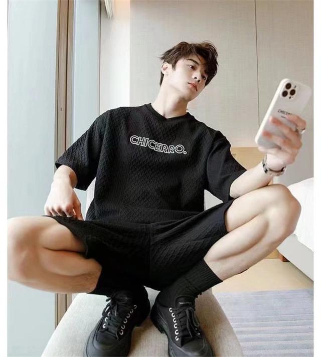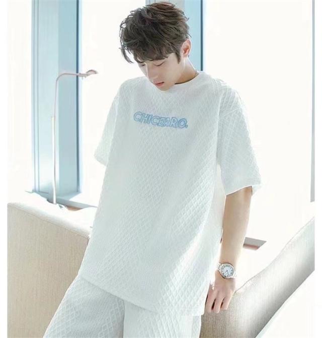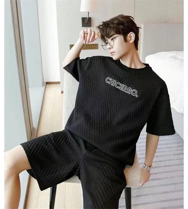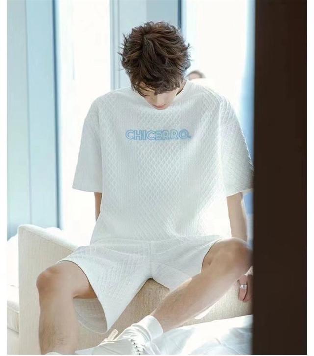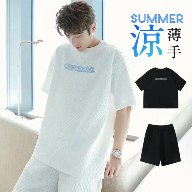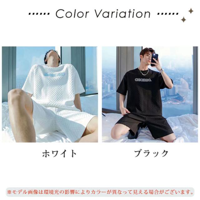 上下セット セットアップ メンズ 半袖 スウェット 薄手 ハーフパンツ 総柄 英字 ルームウェア 部屋着 カジュアル ゆったり か