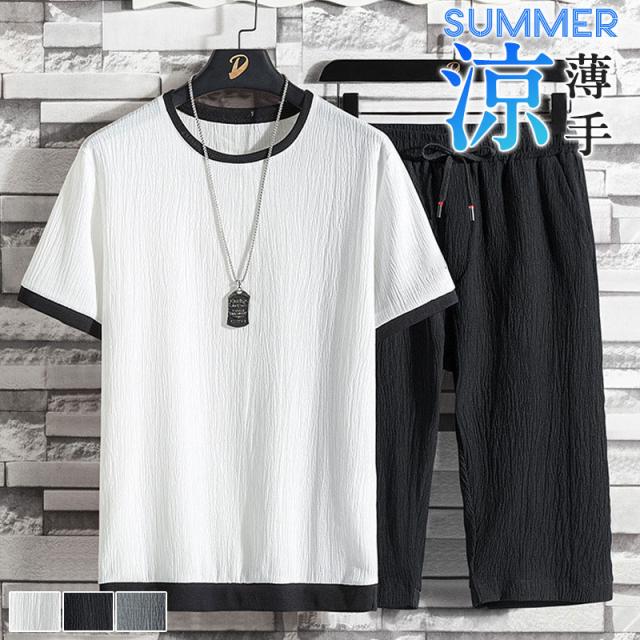 上下セット セットアップ メンズ 半袖 薄手 ハーフパンツ 接触冷感 速乾 ルームウェア 部屋着 カジュアル ゆったり 大きいサイ