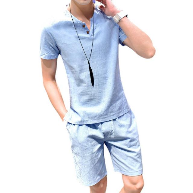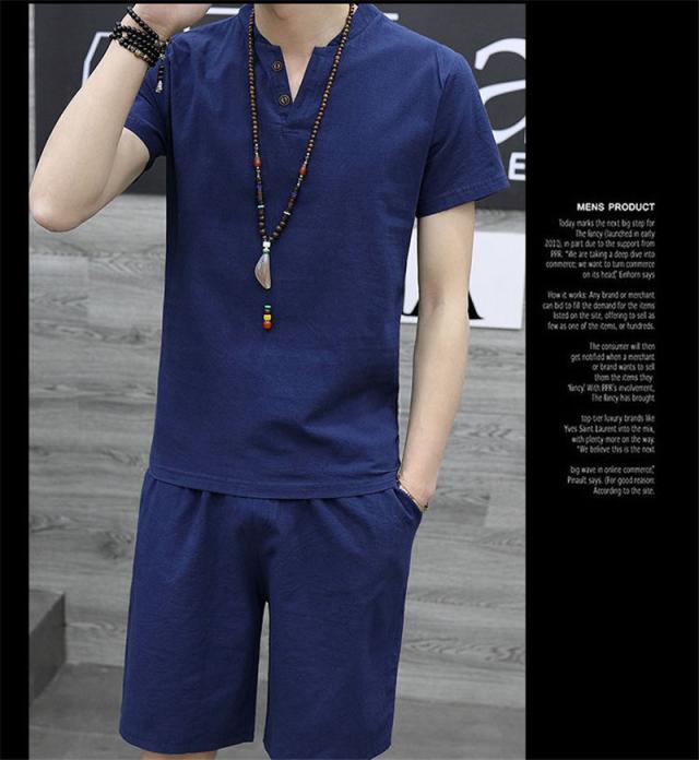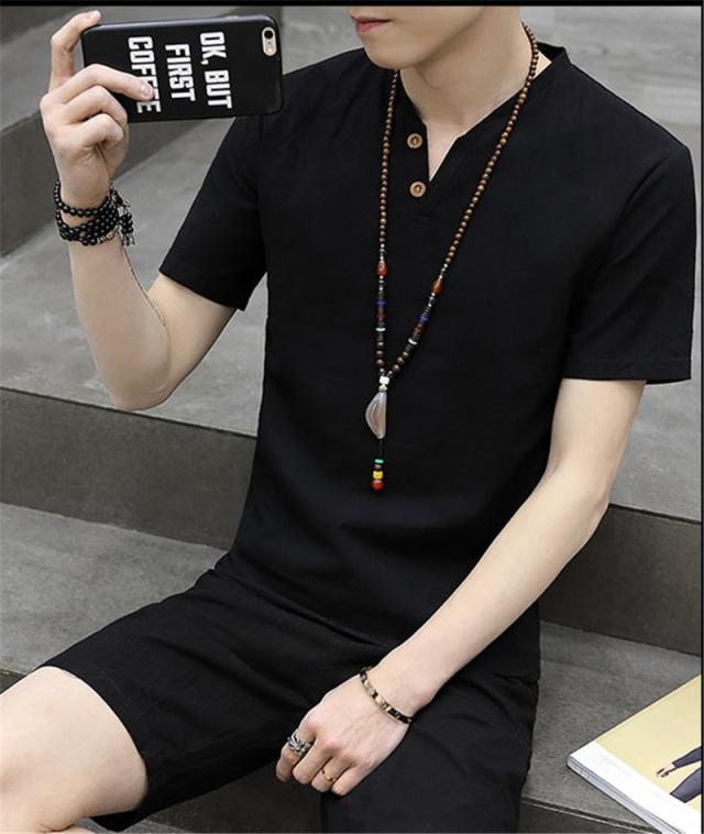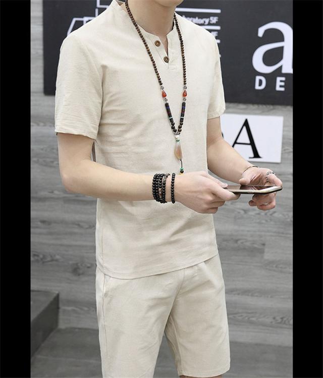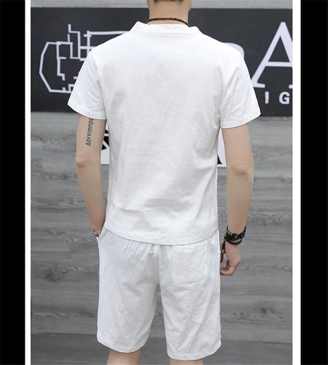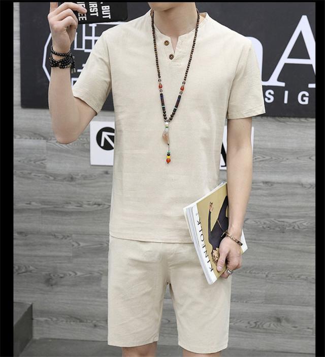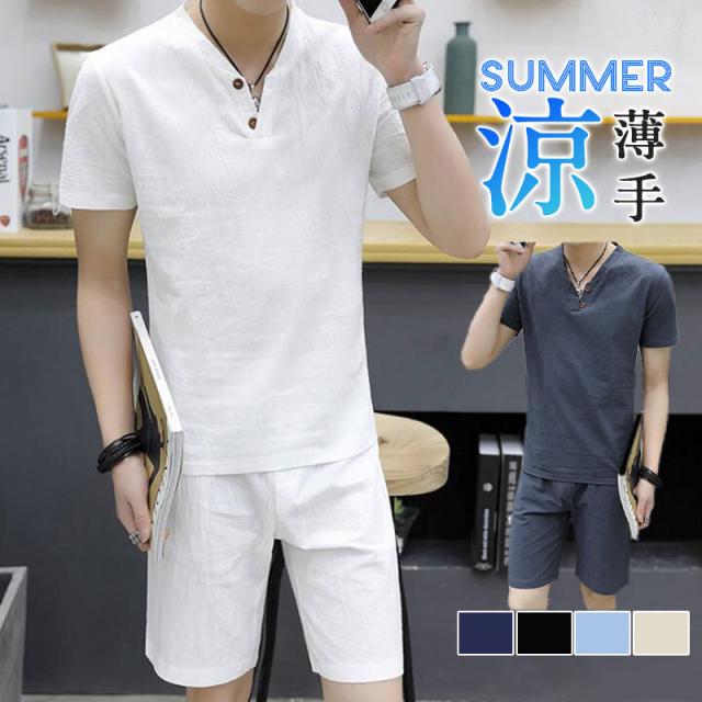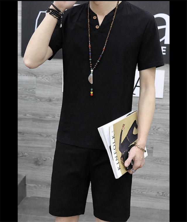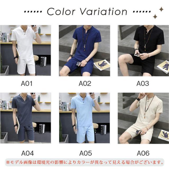 上下セット セットアップ メンズ リネン 綿麻 半袖 薄手 ハーフパンツ サルエルパンツ ルームウェア 部屋着 カジュアル ゆった