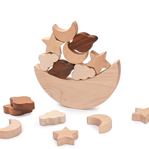 【赤ちゃんが夢中になれる積み木のおもちゃ】三日月の形をしたベースの上に大小さまざまなブロックをつみかさねていくバランスゲームです。指先の器用さや思考力、バランス感覚を養うことができ、シンプルでおしゃれなデザインで、そのままインテリアとしてお部屋に飾ってもかわいいですよ。