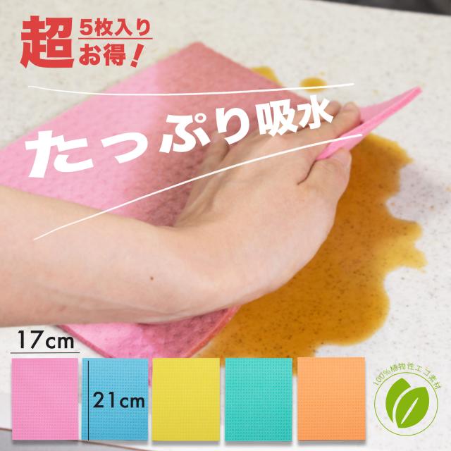 超お得5枚入り セルロースクロス スポンジワイプ エコふきん ディッシュクロス キッチンクロス 1000円ぽっきり 送料無料