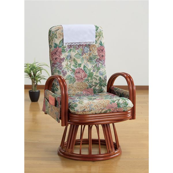 商品仕様: 天然籐リクライニングハイバック回転座椅子ハイタイプ (サイドポケット付き)