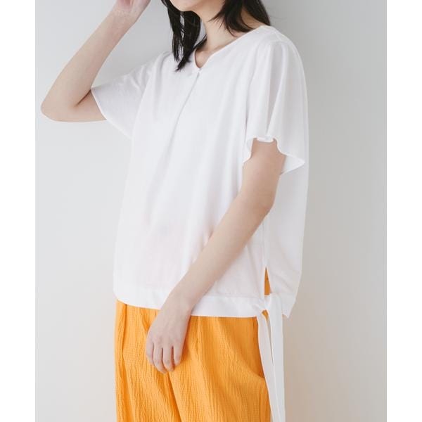 サイドのリボンが女性らしさを演出してくれるドライタッチなカットソー