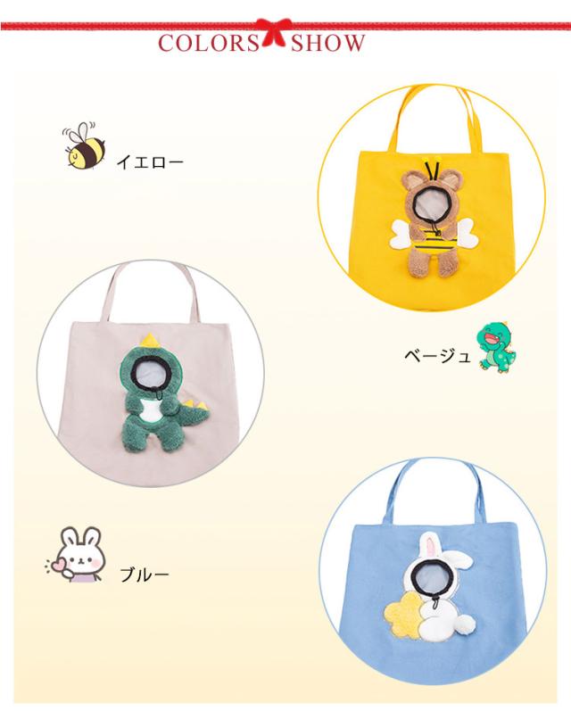 | 丈夫なキャンバス地で、耐久性も抜群、裏地はポリエステル素材です。 ロープ留めでワンちゃんやネコちゃんが横から顔を出すことができます。 内部には、飛び出し防止のリードがついてますので、病院などでも安心してご使用していただけます。 手洗いが可能ですので清潔にお使いいただけます。 | |