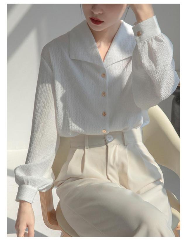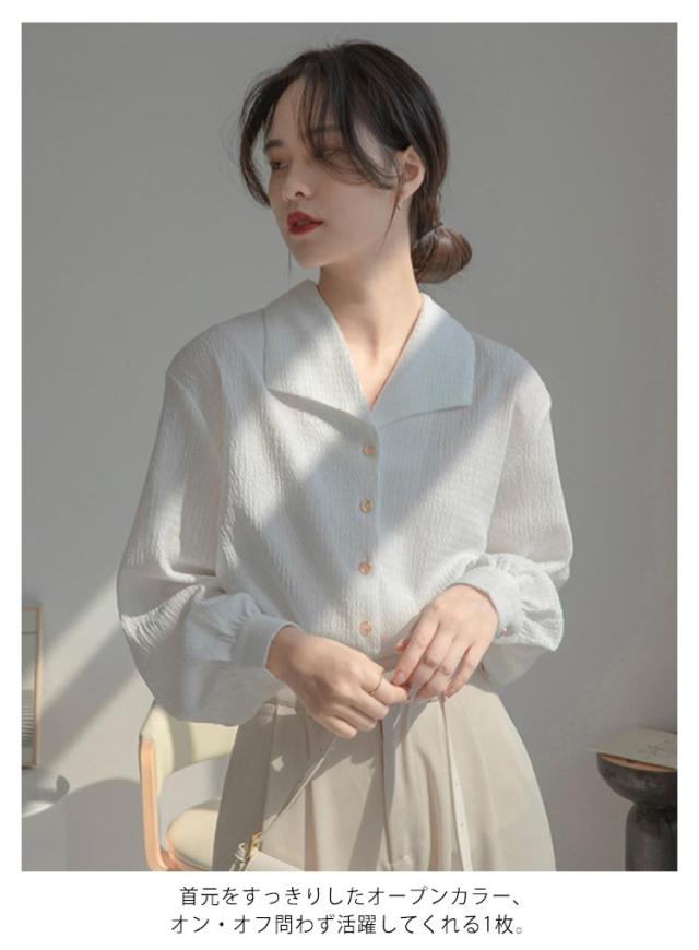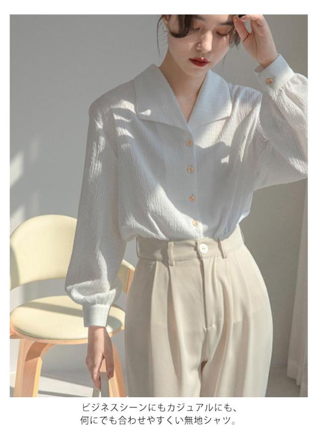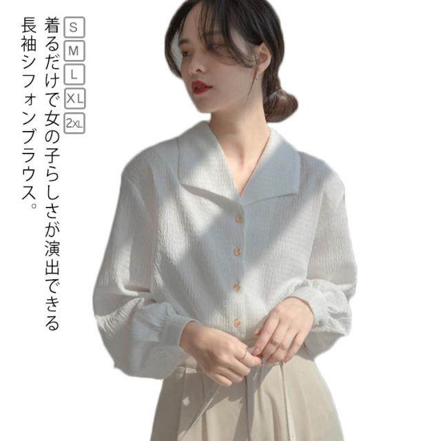 送料無料 開襟 シャツ ブラウス 長袖 レディース 春 夏 シフォン ブラウス トップス レトロ Vネック オープンカラー シフォンシャツ 長袖シャツ シンプル オフィス 事務服 お仕事 カジュアル 無地 おしゃれ 大人 上品