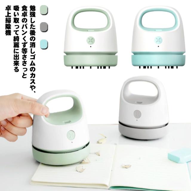 | 勉強した後の消しゴムのカスや、食卓のパンくず等ささっと吸い取って綺麗に出来る卓上掃除機。 コードレスの充電式なのでどこでも利用できて便利です。 握りやすい取っ手で使いやすいです。 持ち心地が良く、長時間握っても痛くないで持ち運びにも大変便利です 卓上掃除機なので宿題や勉強の後のゴミを吸いとったり、おやつやパンのくずを掃除するのに最適です。 付属のノズルを付ければ、掃除機では届かないすきまのお掃除やキーボードの清掃に最適です。 | |