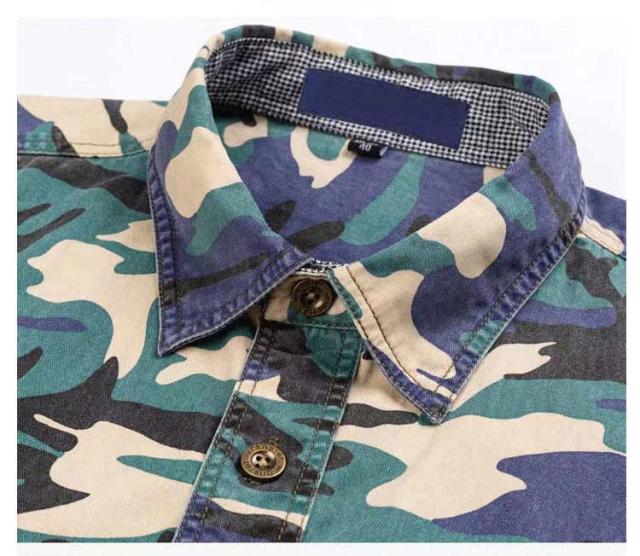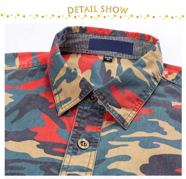 全4色×7サイズ ミリタリーシャツ メンズ 長袖 シャツ 迷彩柄 デニムシャツ 綿 シャツジャケット 大きいサイズ トップス 春秋 送料無料 カモ柄 ワークシャツ コットン レッド カーキ ブルー グレー