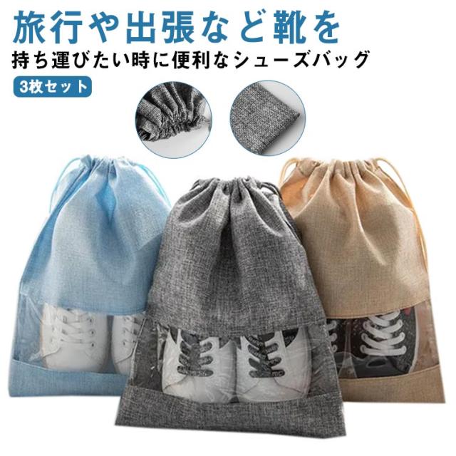 シューズバッグ 大人 中学生 高校生 巾着タイプ 3枚セット スポーツ シューズケース クリア窓口 靴入れ 軽量 防水 アウトドア 旅行 通学 上履き入れ シューズ入れ 収納バッグ マルチ収納 かさばらない コンパクト 無地 靴入れ袋 軽量 男女兼用 ギフト 送料無料