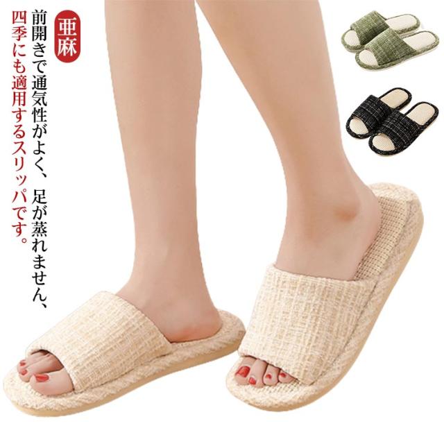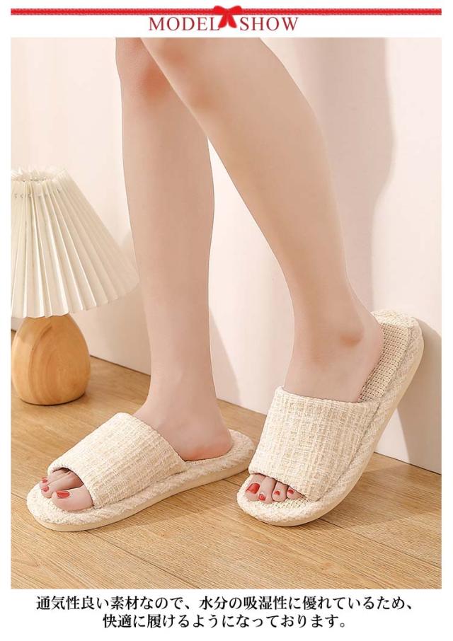 亜麻 スリッパ 室内履き レディース メンズ リネン ルームシューズ レディース 滑り止め 可愛い 軽量 前開き シンプル 洗濯可 四季用 来客用 部屋用 サンダル ギフト 春 夏 秋 抗菌 防臭 上品 送料無料