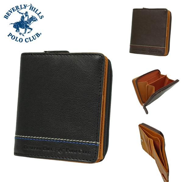 サイフ 財布 2つ折り ラウンドファスナー 大型小銭入れ メンズ 牛革 ブランド BEVERLY HILLS POLO CLUB 61B404 カード サイドステッチ 化粧箱入り ギフト プレゼント お祝い