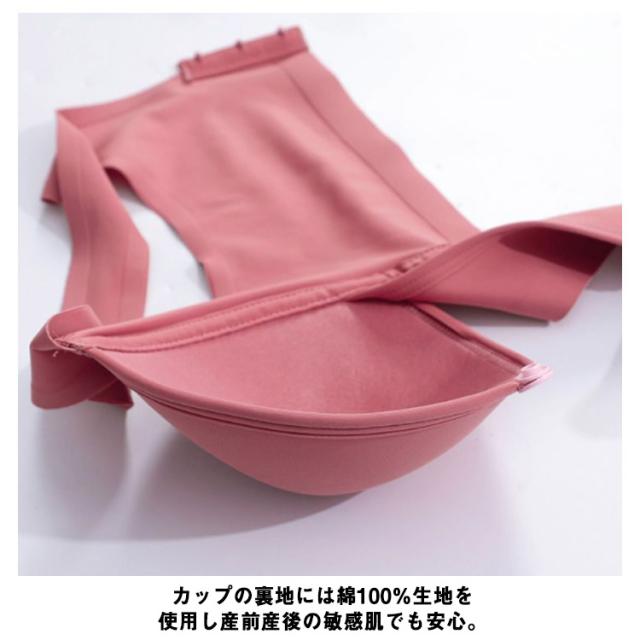 | 片手で簡単に!一瞬で!外せるから、お腹が空いてる赤ちゃんを待たせずラクラク授乳。 授乳ブラには見えないお洒落で上品なデザインなので、マタニティママへのプレゼントにも。ノンワイヤーで快適。薄型パッドで着る服も選ばず。 3D立体カップで包み込む様にバストをホールドし、垂れ防止。脇高仕様でサイドに流れるのを防ぎます。さらにバックU字仕様で段差ができにくく、背中が綺麗に見え美胸をキープ。 カップの裏地には綿100%生地を使用し産前産後の敏感肌でも安心。カップは伸縮性がありバストが変化しやすいマタニティ期から産後の授乳期、ノンワイヤーだからナイトブラとしても。 | |